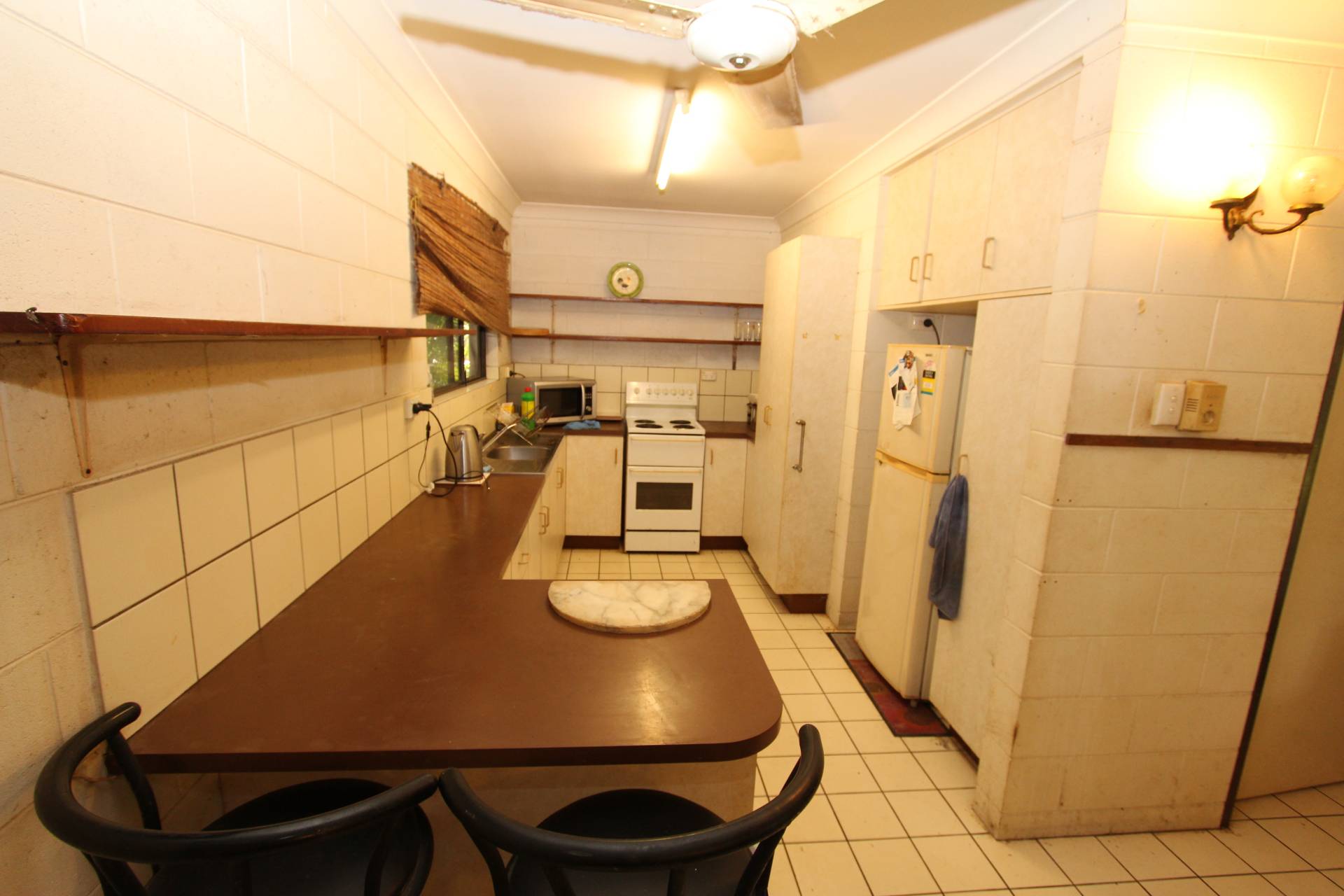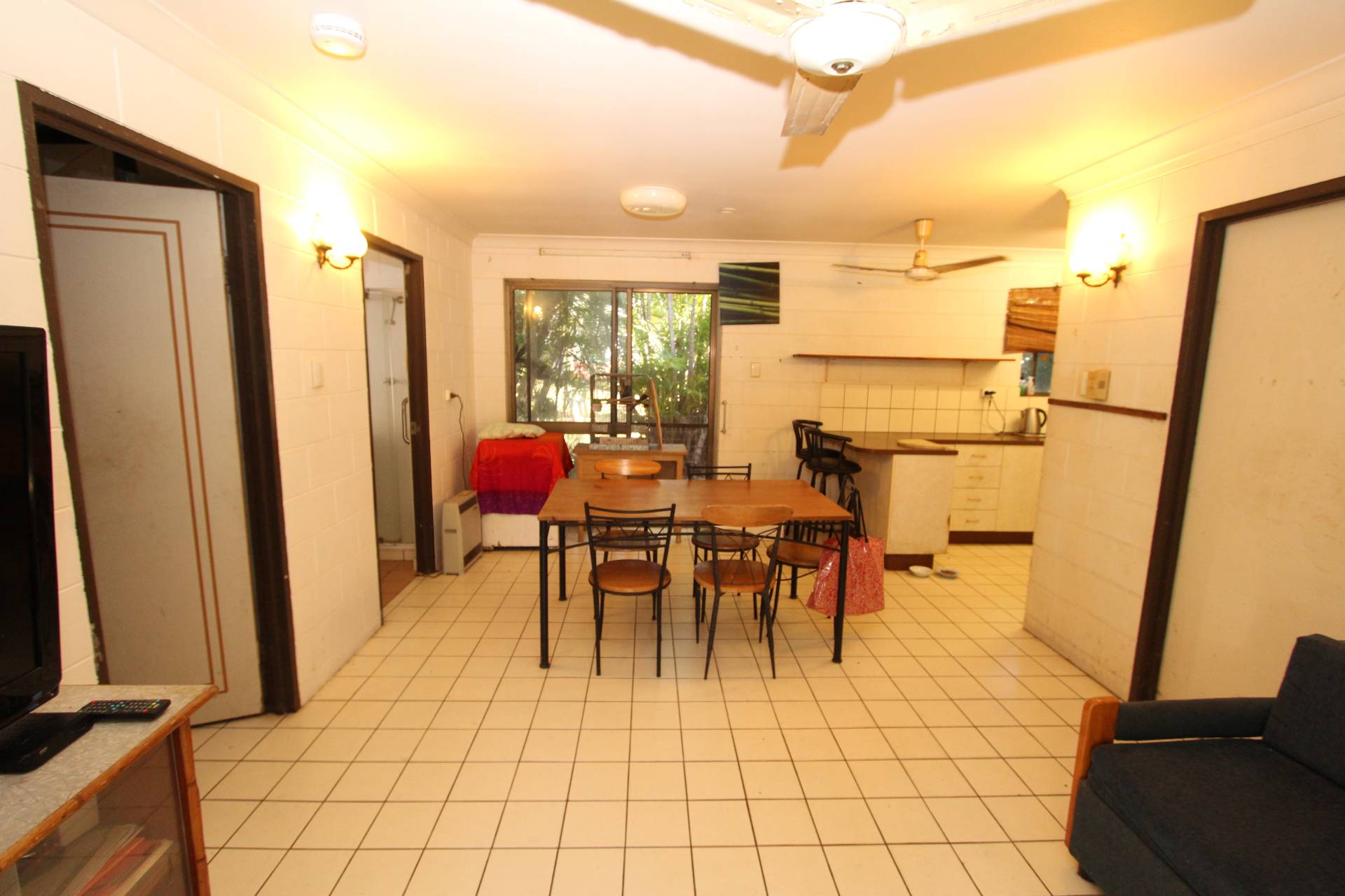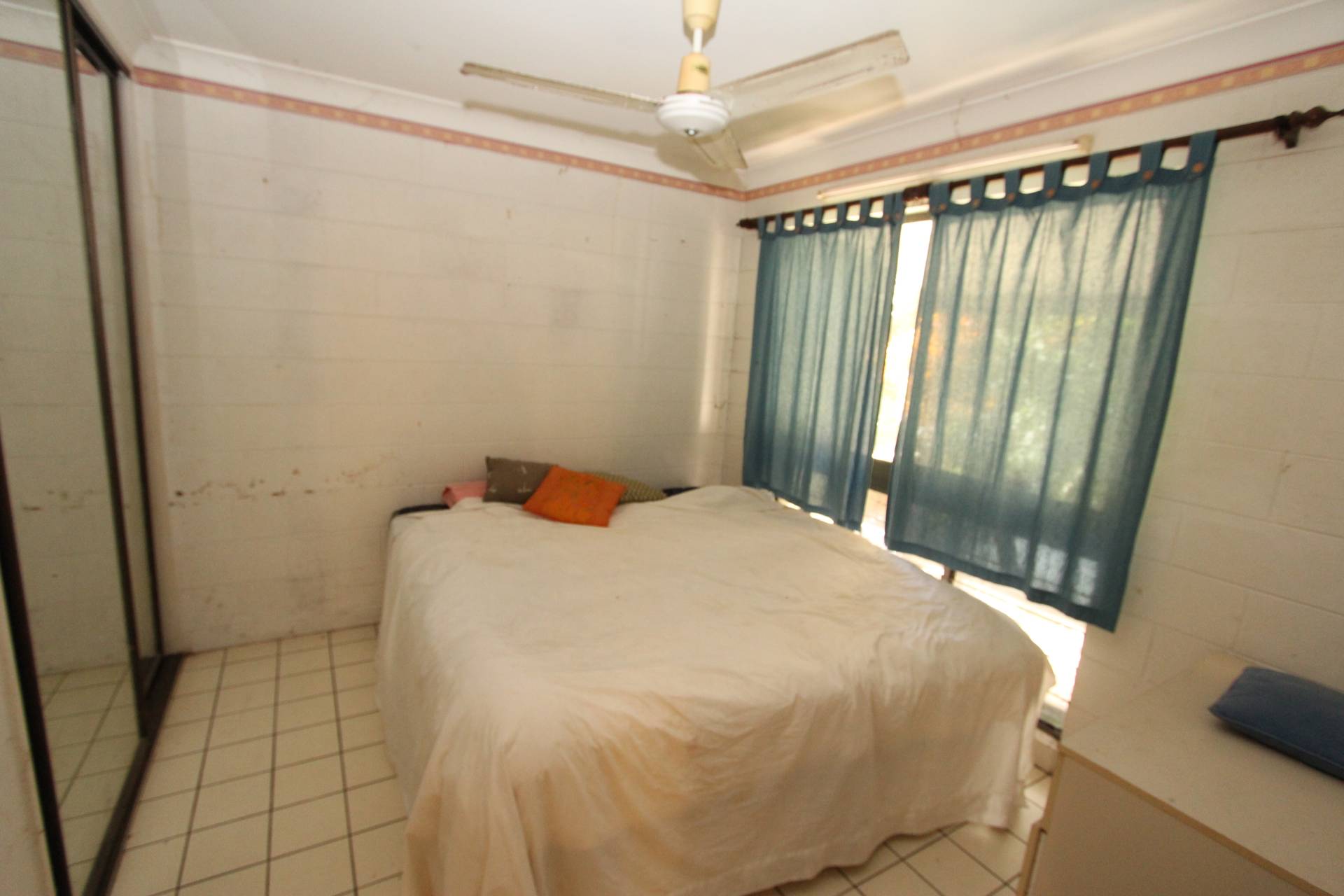 The granny flat is of block construction with tiled floors and has a full-length covered front verandah. Internally, the living area runs through the centre of the unit with a galley kitchen and bedroom to the right side and the bathroom/laundry and second bedroom to the left side. Both bedrooms have large built-in-wardrobes and are a good size with one being air-conditioned. The unit is definitely in need of a renovation although the current tenant has been at the property for approx ten years and would probably be happy to stay on if given the opportunity to do so.
