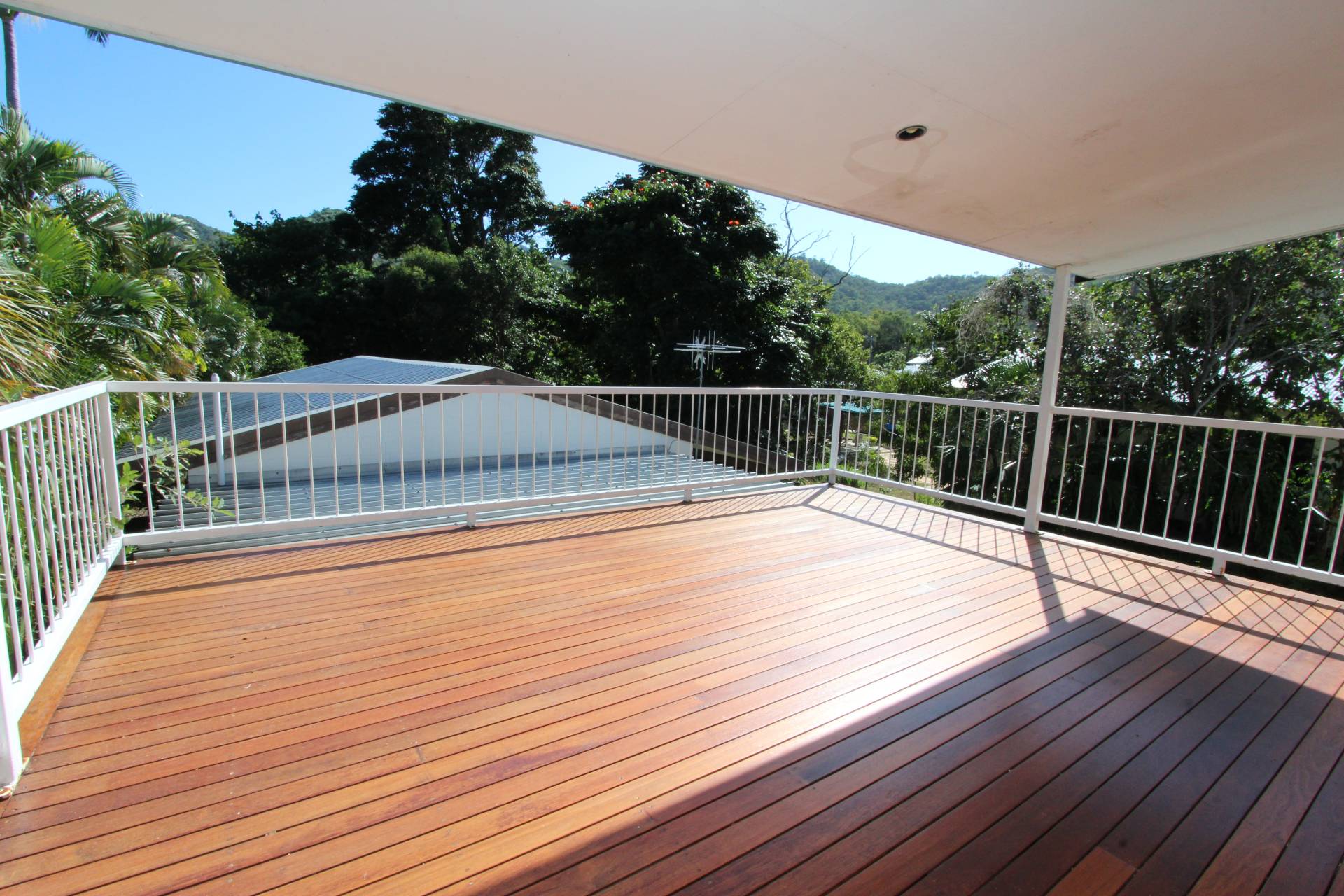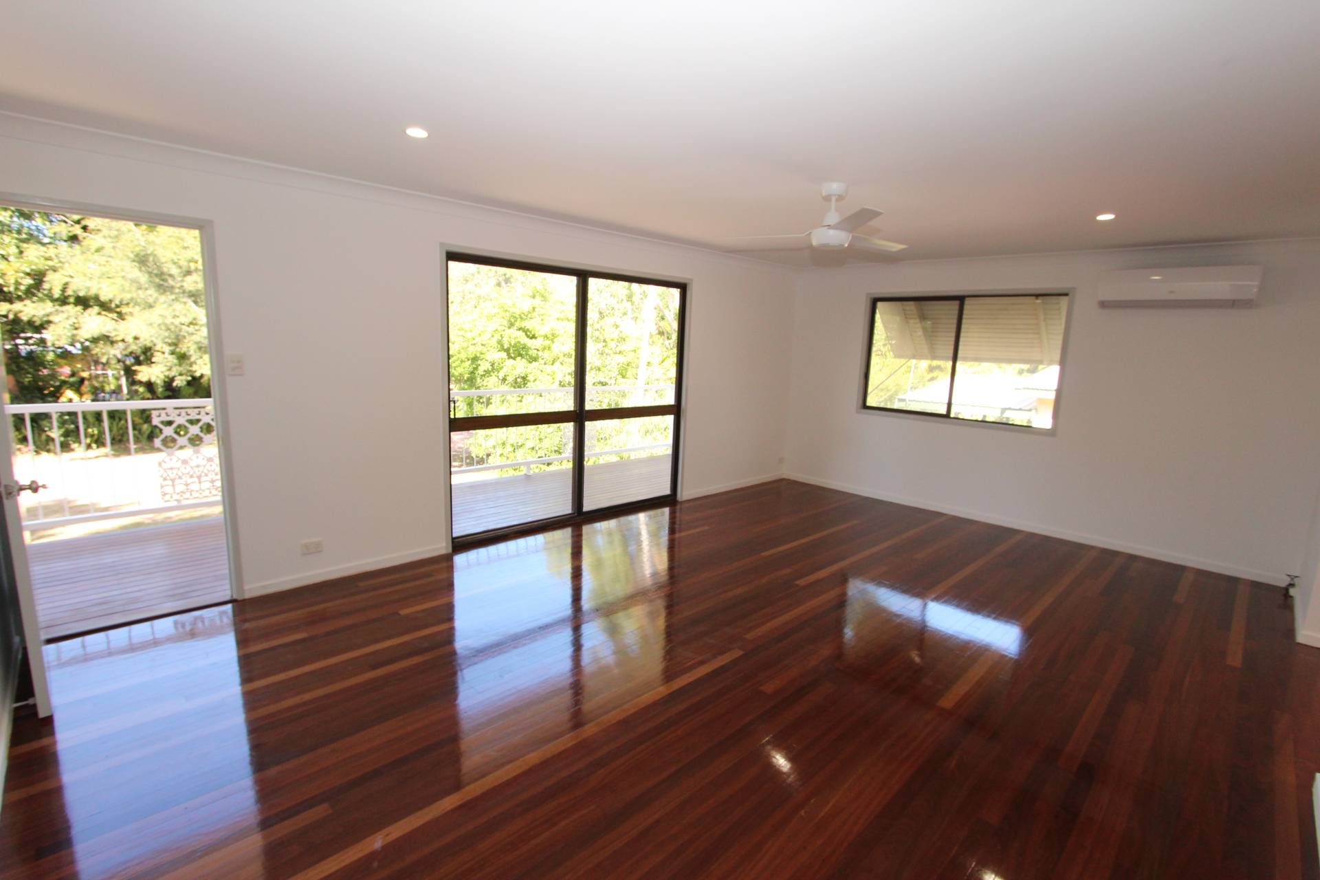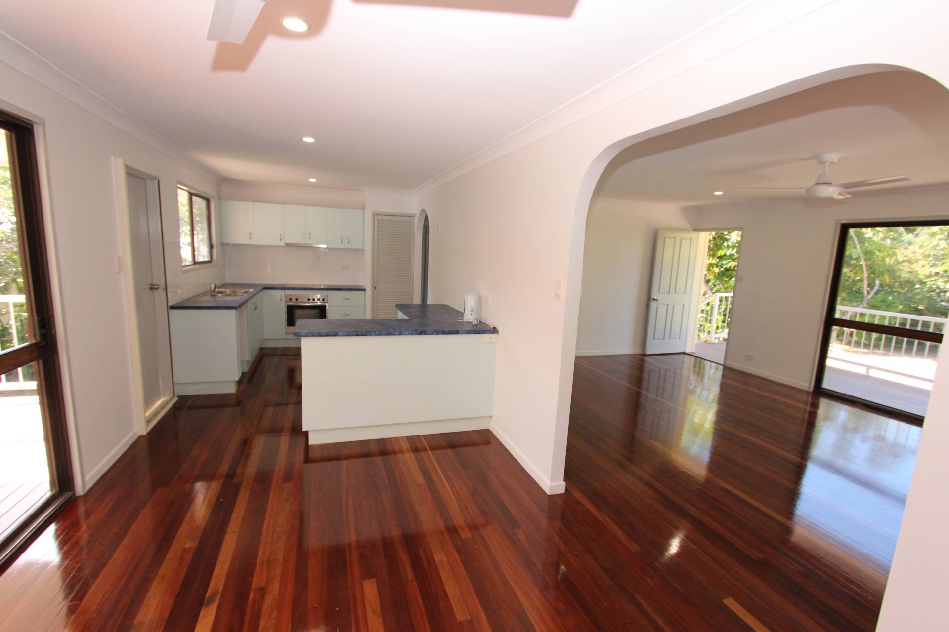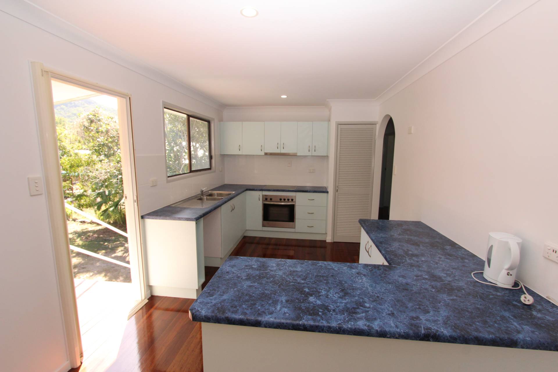 The house has been recently renovated with beautiful polished wood floors, a fresh coat of paint and new lights and fans throughout. As yoou walk up the front stairs onto the front deck, you are greeted with a lovely view of Sail Rock. The large living area opens onto the front deck through sliding glass doors as well as the front door. Both the lounge and the kitchen-diner have their own split system air-cons although you get lovely breezes year-round at this property. Three good-sized bedrooms all feature built-in-wardrobes and the master has a box air con. There's storage in the hallway and the bathroom has a corner spa bath with shower over and vanity with a separate toilet adjacent. The dining room opens onto the large back deck which has views to the surrounding hills and there are back stairs down to the laundry under the house and back yard where the granny flat is located.