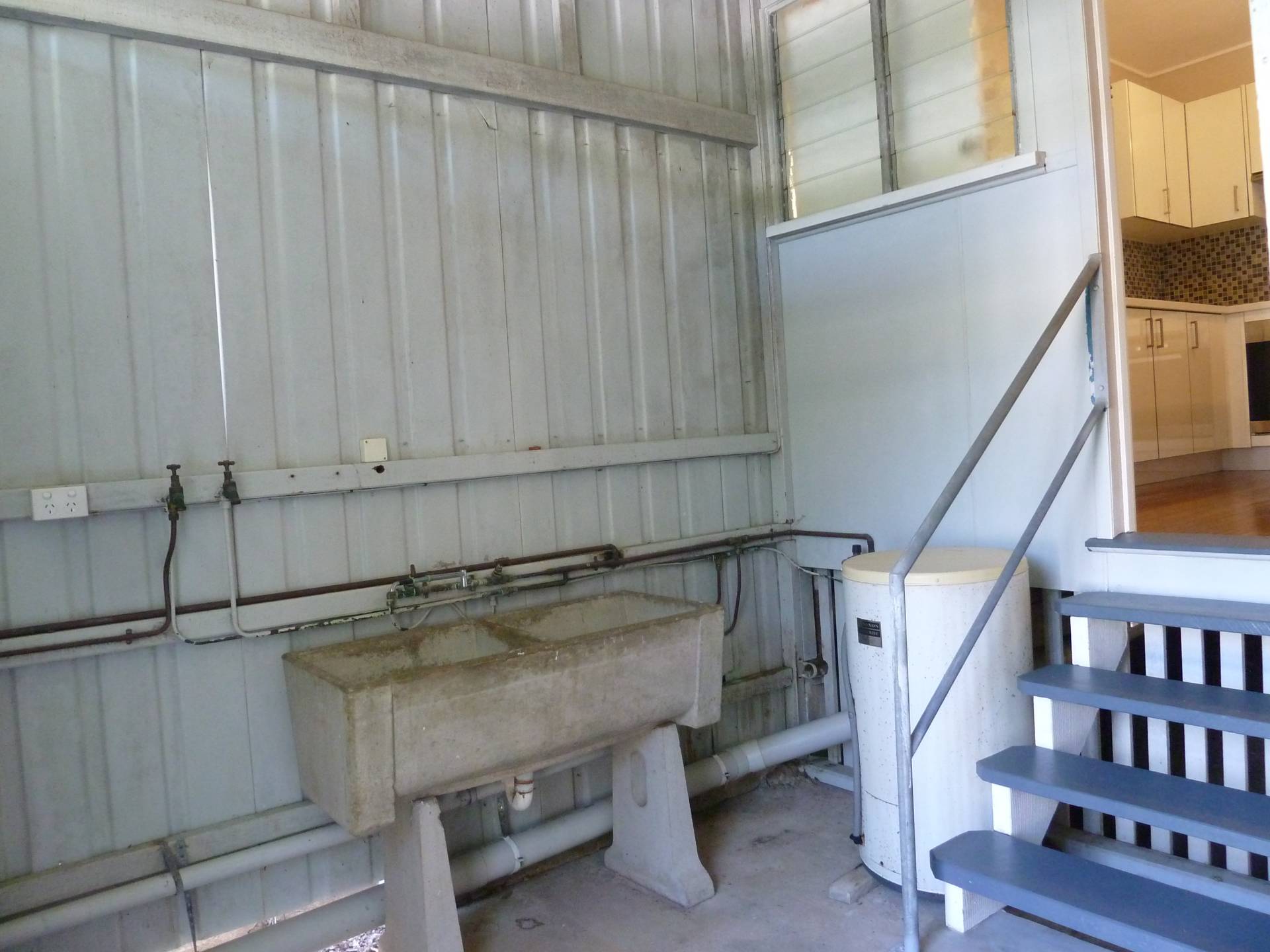 • At the back of the property is a long tiled room with split system air-conditioner, off this room is the modern 2nd bathroom