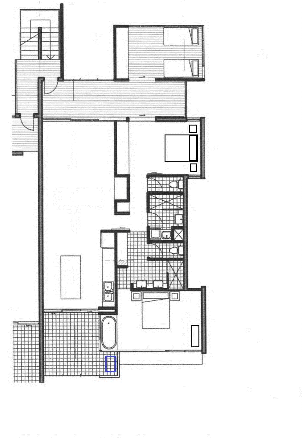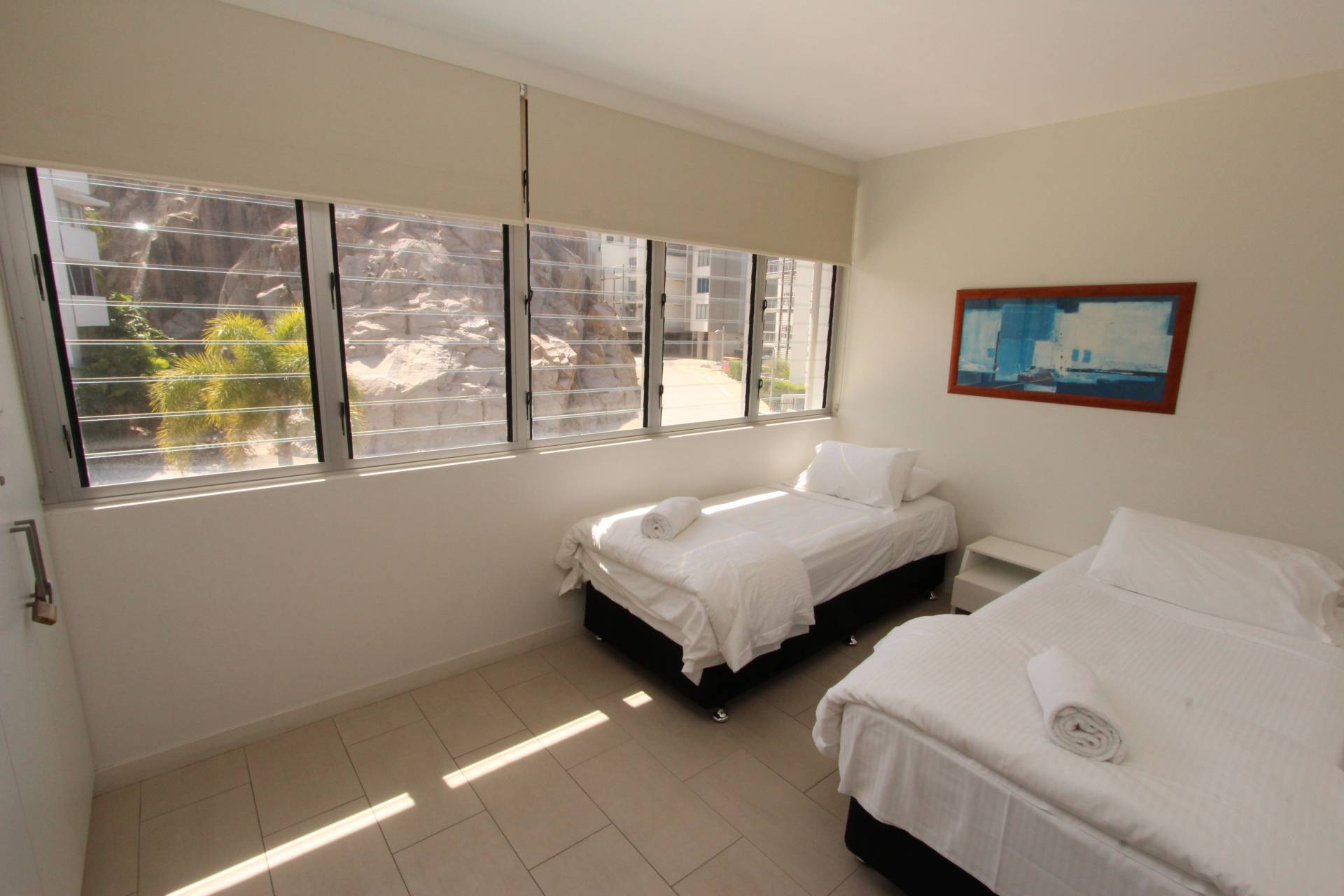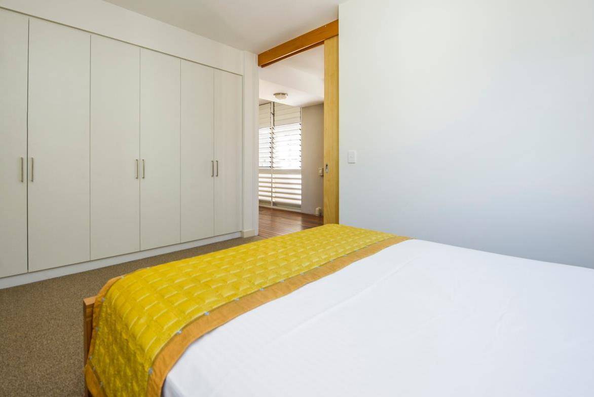 The guest rooms are very generous in size with lots of built-in storage and open off the beach room at the far end, both benefitting from banks of louvre windows to capture the cool sea breeze, although of course the whole apartment has air-conditioning for those who choose to use it.