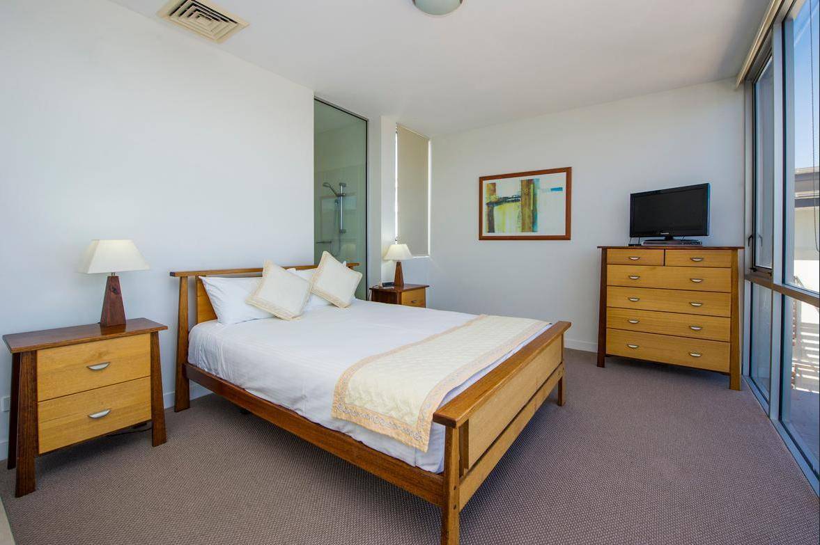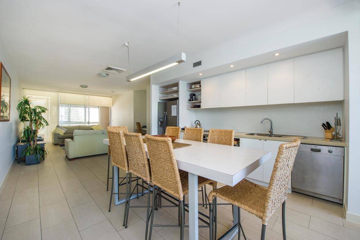 This top floor, corner apartment stands out amongst the others, with it's spacious floorplan, additional windows and complete privacy. The views are superb from the moment you step in the front door which brings you into the 'beach room', a bright and open large entry hall, with floor-to-ceiling glass doors allowing you to see straight through the open-plan living area to the azure water of the Coral Sea beyond.