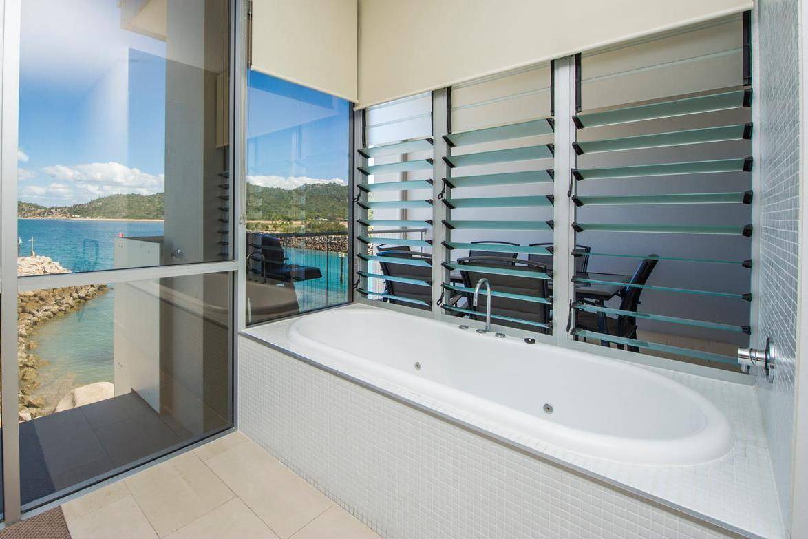Waking up in the master suite is a joy with the dawn light playing on the water and the granite boulders and hoop pines of Hawkings Point in the distance. The spa bath is the perfect place to relax and even a quick shower in the ensuite bathroom won't be so quick as you drink in the views.