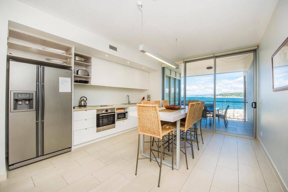Entertaining is a breeze, with the galley-style kitchen opening onto the covered balcony, which is where you are likely to spend most of your time. It's not uncommon to see whales, dolphins and turtles and it's always pleasant to watch boats coming into the marina or sailing by. You'll never miss a ferry as you're just 2 mins walk to the ferry terminal and with good transport options nearby, you won't really need a car, although a parking space is allocated within the gated complex.