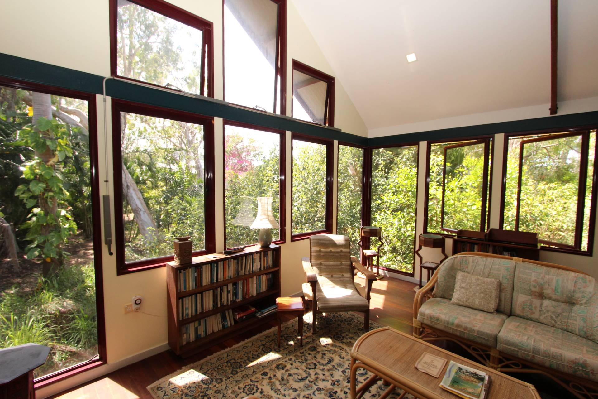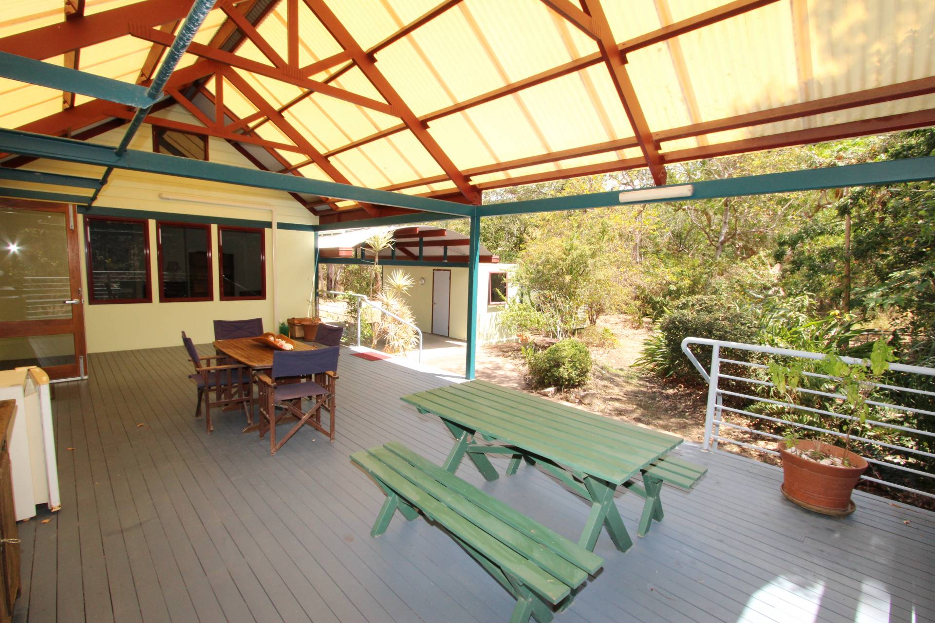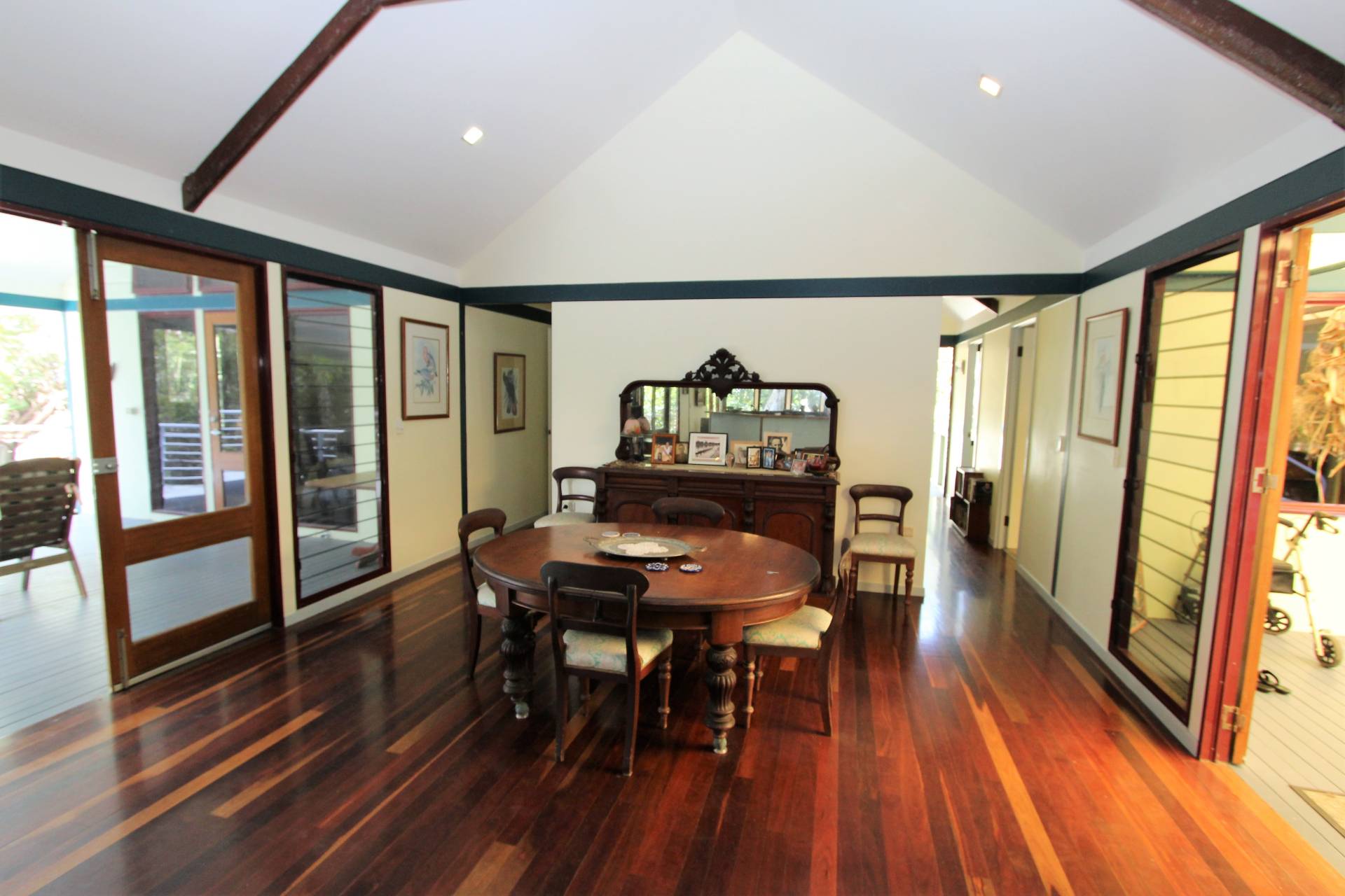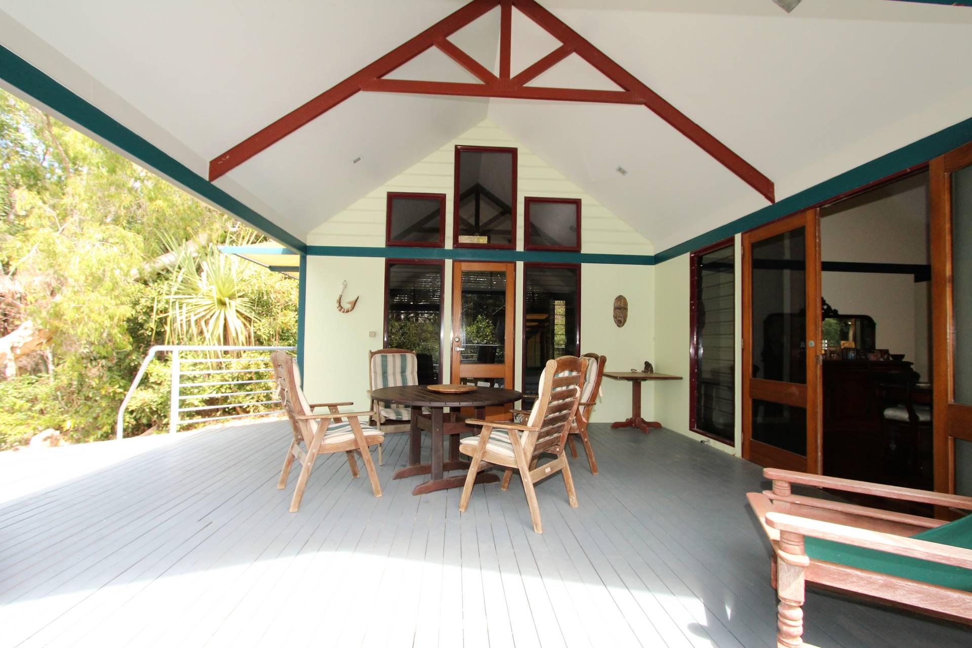 The home is centrally located on the block with a creek boundary to one side and nature reserve to the other. The gardens are low maintenance native bushland and some gently pruning of minor branches would open the sea views up spectacularly. There's room for a pool off either of the enormous covered decks, although with direct beach access across a cute timber walkway, why would you need one?