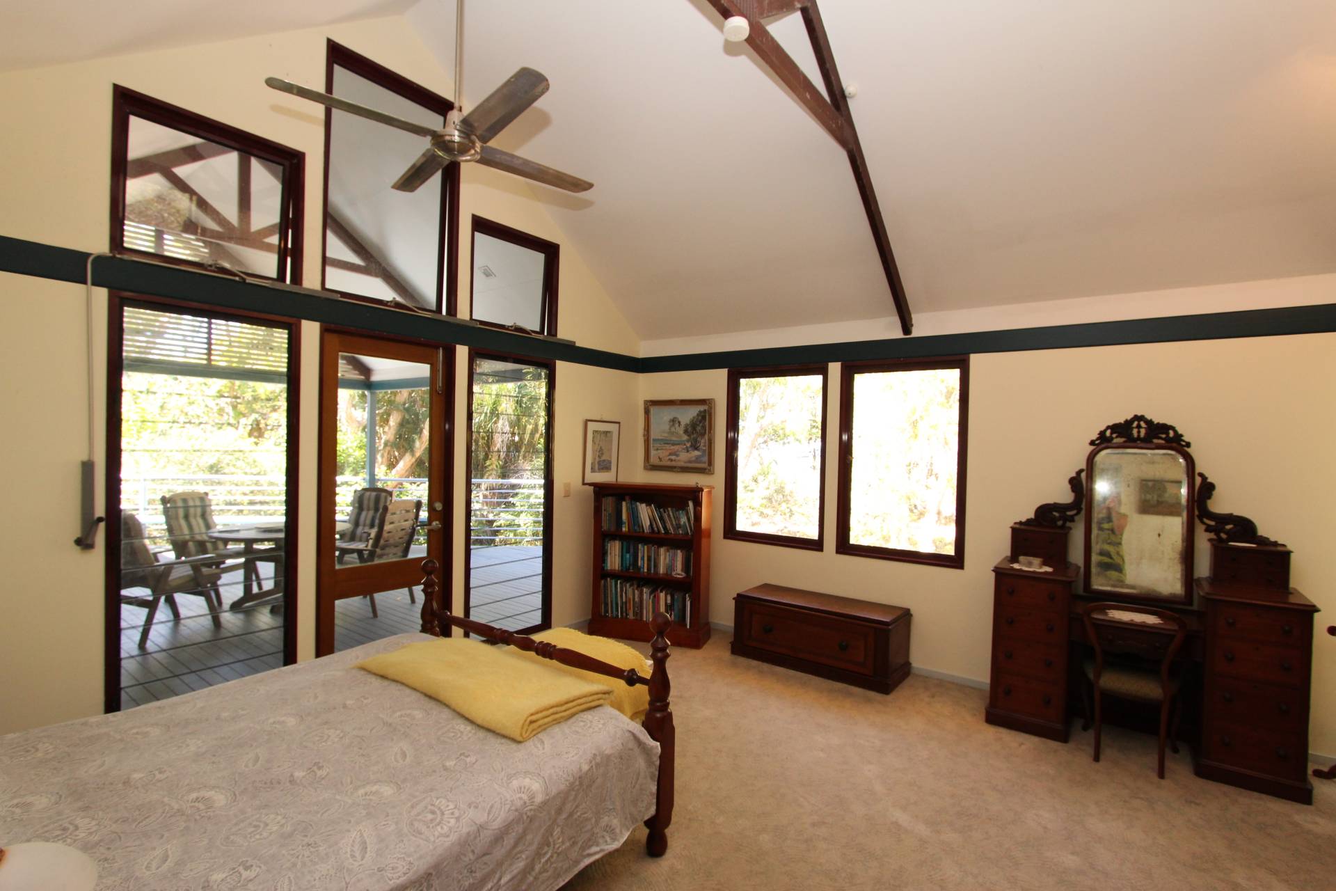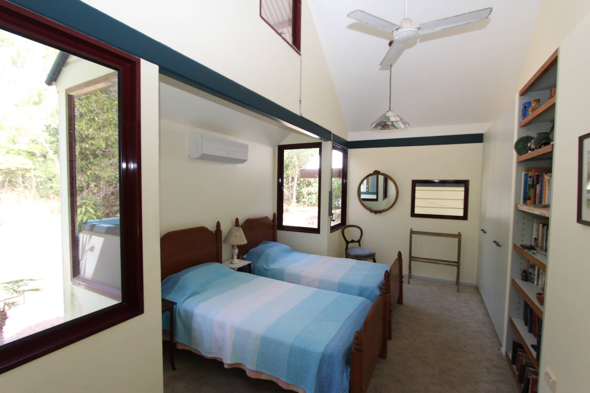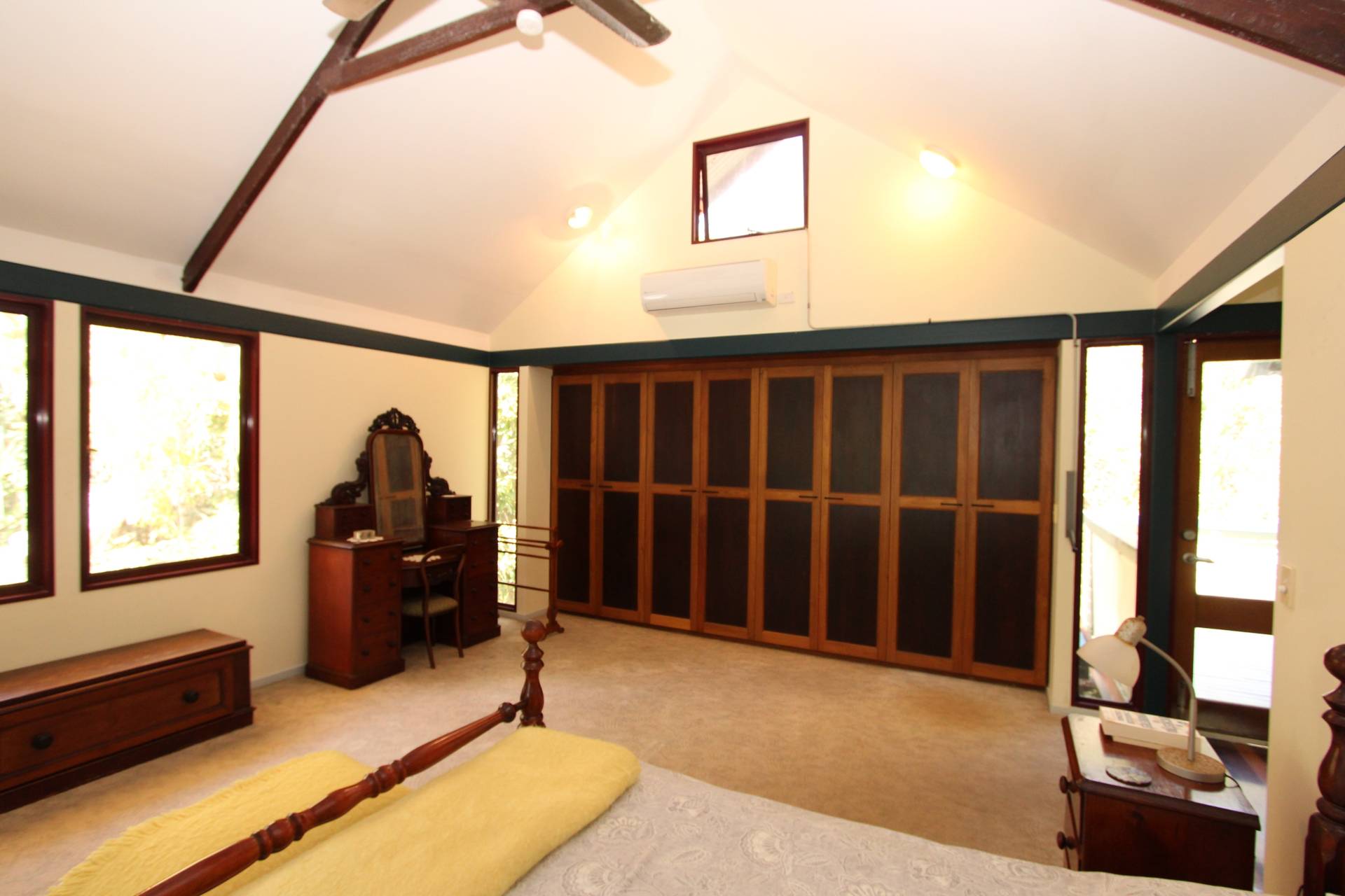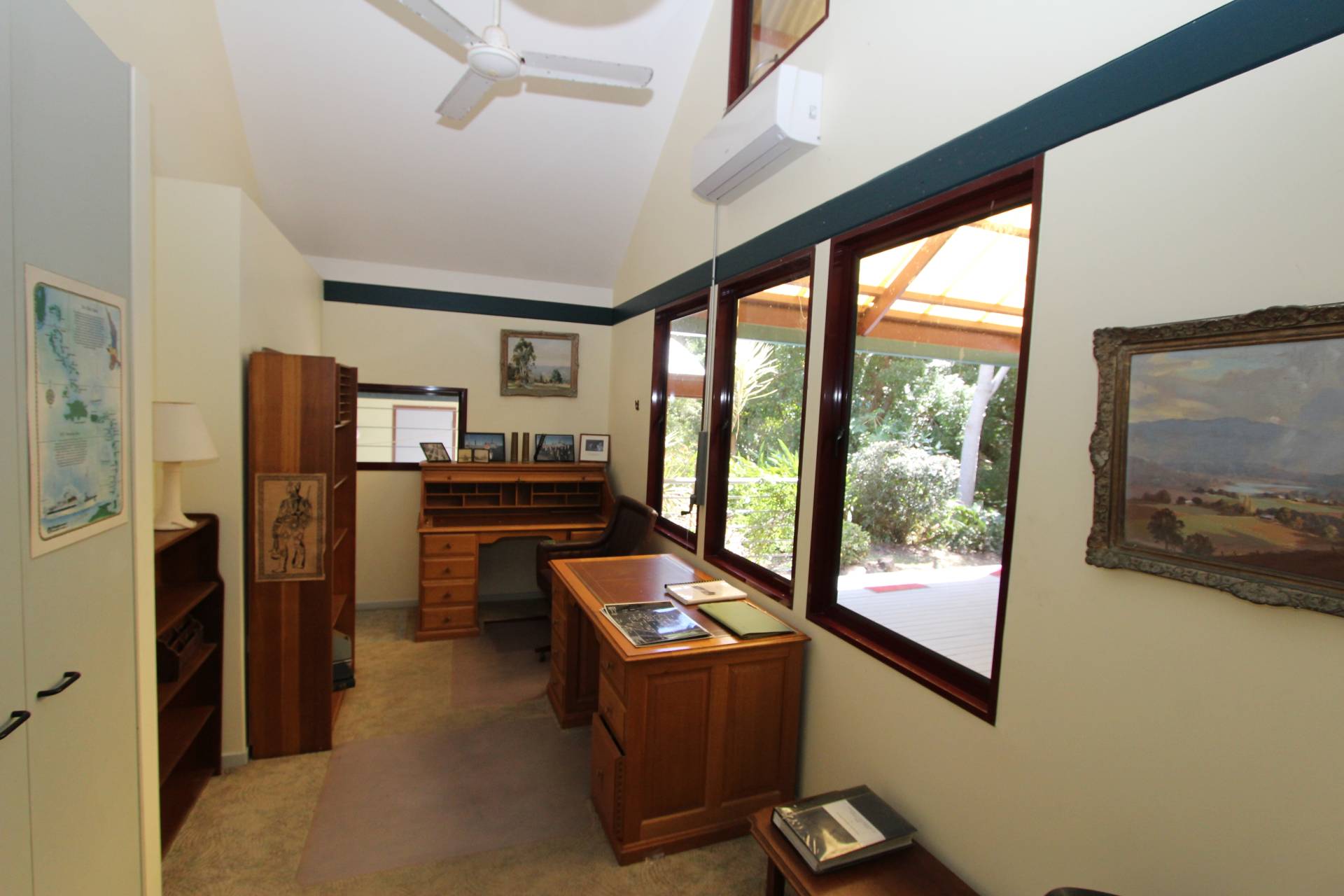 The enormous master bedroom also showcases sea views from sunrise to sunset through its large casement windows. Doors open onto the deck and the built-in-wardrobes are so plentiful, there surely won't be any arguments over space! The second bedroom is also very generous in size, again with large built-in-wardrobes and air-conditioning. It is located just on the other side of the two-way bathroom - which could with relative ease be converted into an ensuite and separate family bathroom. An internal storeroom with floor-to-ceiling storage will always be useful, whether for an owner occupier or holiday home and the third bedroom would also make a lovely office with delightful bush views off the back deck.