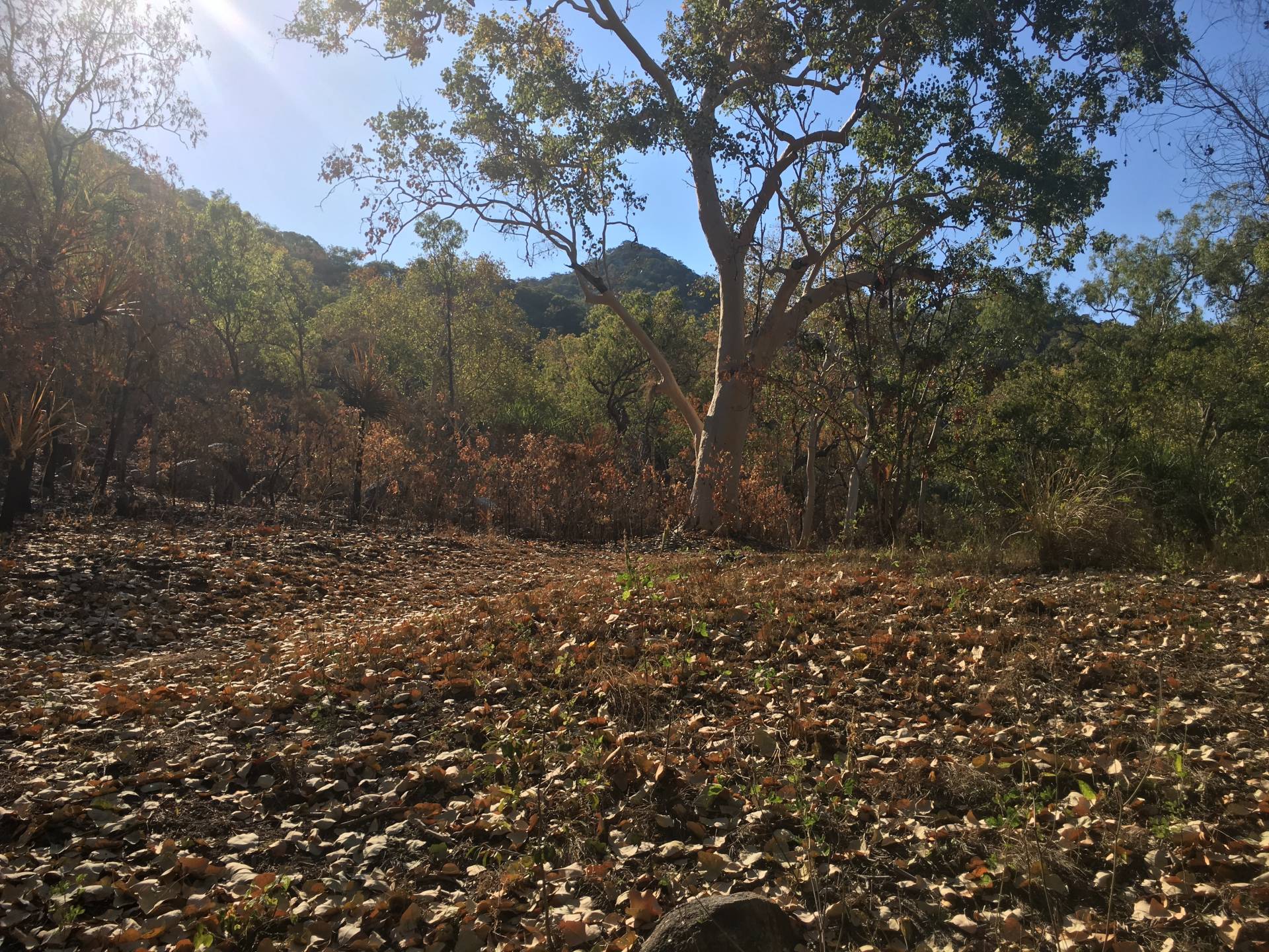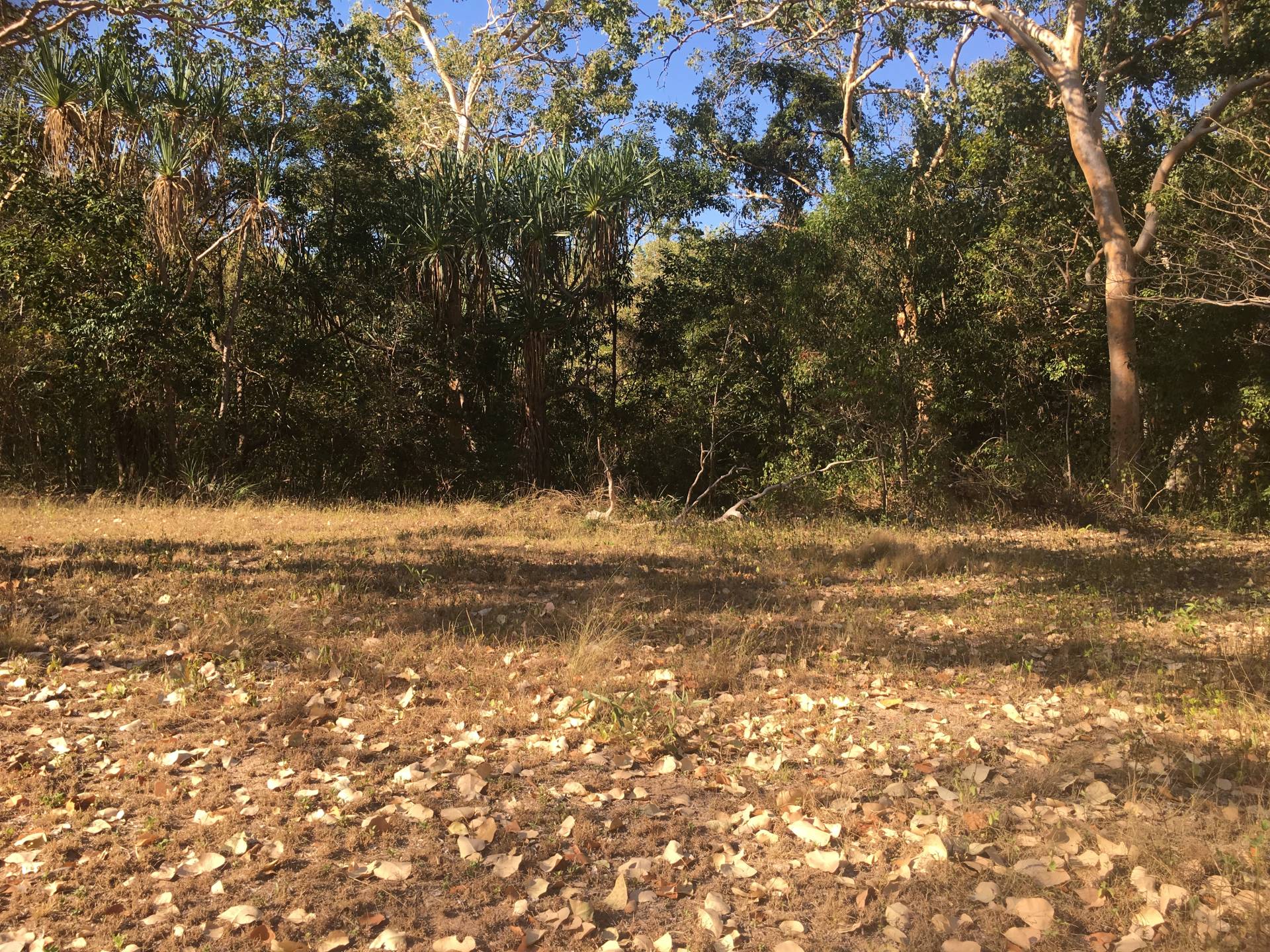 Backing onto National Park, large bush blocks like this are highly sought-after. Where the road ends and the National Park begins, there is a level area where you could build a beautiful low or high set home with spectacular views over the seasonal creek to the National Park, with its sculptured granite boulders, native grasses, paperbark trees and pandanus palms.